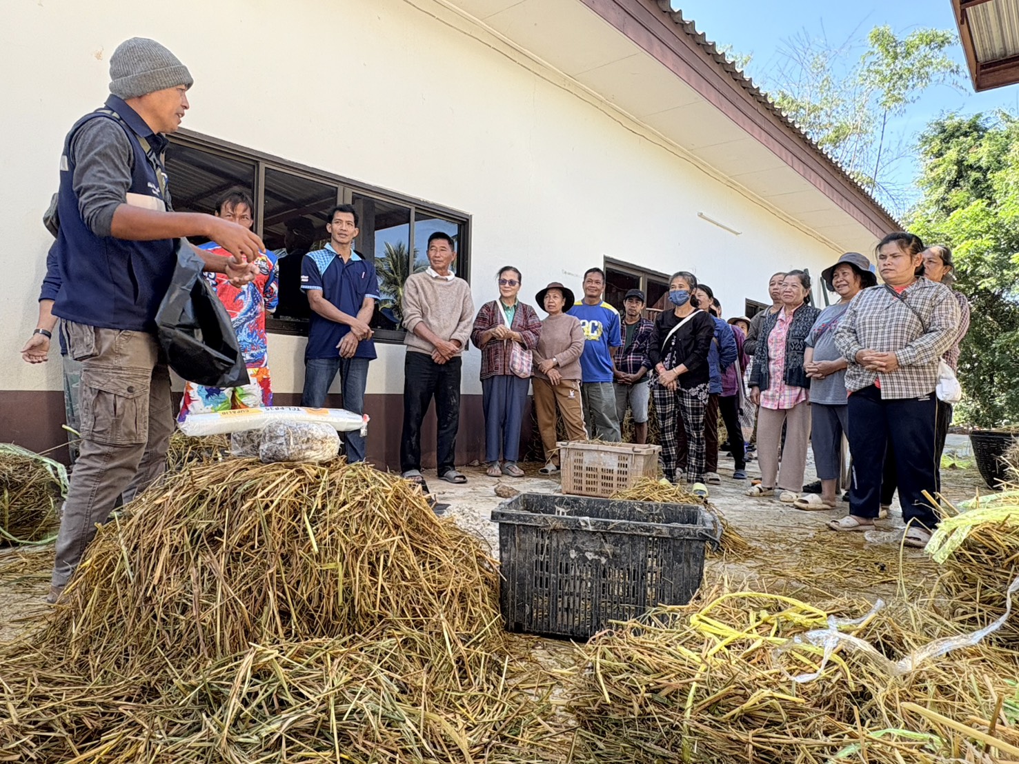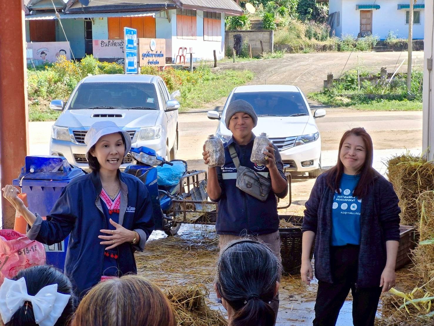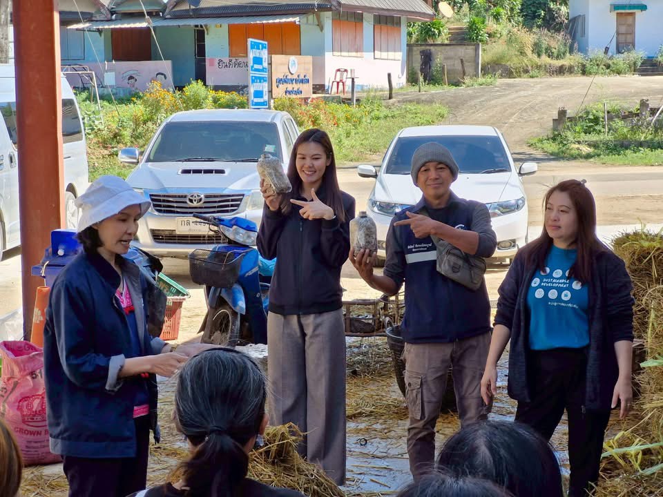 21-22 พฤศจิกายน 2568 สถาบันสิ่งแวดล้อมไทย หรือ TEI โดยโครงการพัฒนาความร่วมมือเมืองคู่ขนาน ไทย ลาว เมียนมา ขับเคลื่อนการจัดการและลดมลพิษหมอกควันข้ามแดน ภายใต้การสนับสนุนของสำนักงานพัฒนาการวิจัยการเกษตร (องค์การมหาชน) หรือ สวก. และโครงการกลไกความร่วมมือขับเคลื่อนแผนปฏิบัติการร่วมยุทธศาสตร์ฟ้าใส (CLEAR Sky Strategy) เพื่อลดมลพิษหมอกควันข้ามแดน ภายใต้การสนับสนุนของสำนักงานการวิจัยแห่งชาติ (วช.) โดยมีคุณวิลาวรรณ น้อยภา หัวหน้าโครงการ และคุณศุภาพิชญ์ สงคำ ผู้ประสานงานโครงการ สถาบันสิ่งแวดล้อมไทย ร่วมกับทีมพัฒนาชุมชนอำเภอเวียงแก่น จัดการอบรมเชิงปฎิบัติการให้กับเกษตรกรและผู้นำชุมชนเพาะเห็ดฟางและเห็ดโคนน้อยใช้ประโยชน์ฟางข้าวและเปลือกข้าวโพดหลังการเก็บเกี่ยวลดการเผาใน 6 หมู่บ้านร่องในพื้นที่เป้าหมายอำเภอเวียงแก่น กลุ่มแรก จำนวน 180 คน เพื่อส่งเสริมทางเลือกและรณรงค์รวบรวมฟางข้าวและเปลือกข้าวโพดลดการเผา โดยการนำมาใช้ประโยชน์เพาะเห็ดไว้บริโภคในครัวเรือน ใช้ประโยชน์ในรูปแบบที่เหมาะสมกับบริบทของพื้นที่