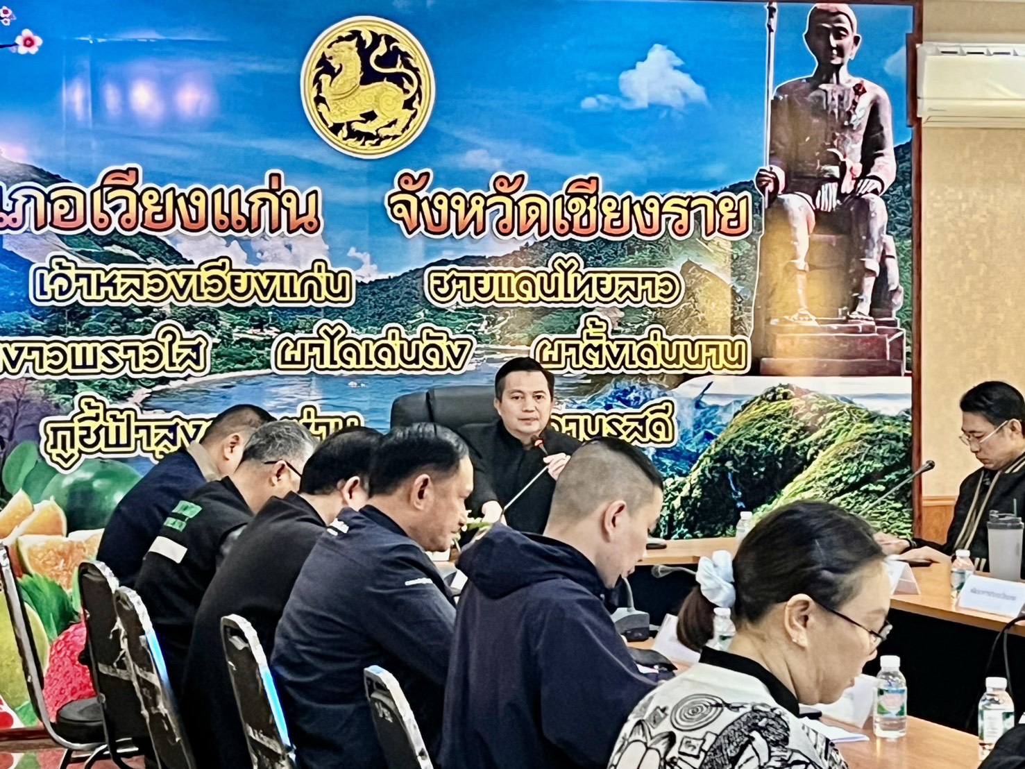 5-6 มกราคม 2569 สถาบันสิ่งแวดล้อมไทย หรือ TEI โดยโครงการพัฒนาความร่วมมือเมืองคู่ขนาน ไทย ลาว เมียนมา ขับเคลื่อนการจัดการและลดมลพิษหมอกควันข้ามแดน ภายใต้การสนับสนุนของสำนักงานพัฒนาการวิจัยการเกษตร (องค์การมหาชน) หรือ สวก. และโครงการกลไกความร่วมมือขับเคลื่อนแผนปฏิบัติการร่วมยุทธศาสตร์ฟ้าใส (CLEAR Sky Strategy) เพื่อลดมลพิษหมอกควันข้ามแดน ภายใต้การสนับสนุนของสำนักงานการวิจัยแห่งชาติ (วช.) ร่วมจัดประชุมหารือร่วมกับหัวหน้าส่วนราชการและผู้นำชุมชนที่สูงบริเวณสันดอยยาว ซึ่งเกิดการลุกไหม้ของไฟข้ามแดน โดยมีกลไกความร่วมมือ 4 อำเภอชายแดน (อำเภอเวียงแก่น อำเภอเชียงของ อำเภอเทิงและอำเภอขุนตาล) ร่วมกันบริหารจัดการไฟป่า และหมอกควันข้ามแดน ร่วมกับผู้นำชุมชนในพื้นที่ หน่วยงานด้านความมั่นคง ผู้นำท้องที่และท้องถิ่น กรมป่าไม้ อุทยานแห่งชาติ ภาคประชาสังคม และหน่วยงานที่เกี่ยวข้อง