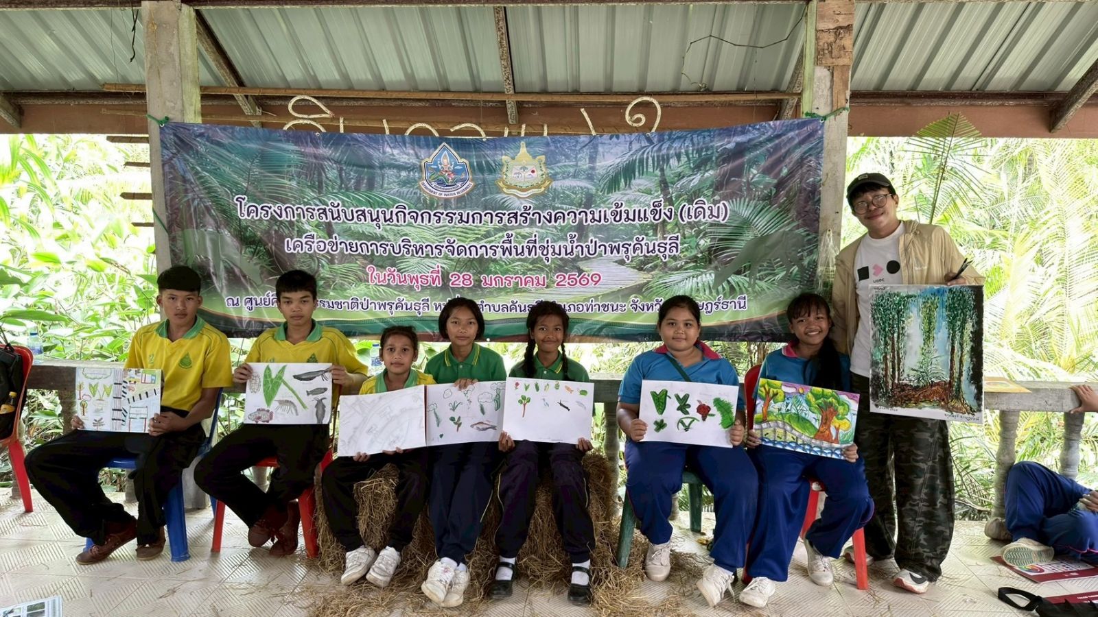 การสร้างฐานความยั่งยืนของพื้นที่ยังต้องเริ่มจากคนรุ่นใหม่ กิจกรรมเสริมสร้างการเรียนรู้และจิตสำนึกด้านการอนุรักษ์ในหัวข้อ “รู้จักป่าพรุคันธุลีผ่านงานศิลป์” จึงถูกออกแบบควบคู่กับกระบวนการเชิงนโยบาย ในรูปแบบ สำรวจ–เรียนรู้–สนุก เพื่อทำความเข้าใจความหลากหลายทางชีวภาพของป่าพรุคันธุลี ทั้งพืชและสัตว์ที่มีความสำคัญและพบเฉพาะถิ่น ก่อนถ่ายทอดความรู้สึกและมุมมองผ่านงานวาดภาพในหัวข้อความหลากหลายทางชีวภาพของป่าพรุคันธุลี