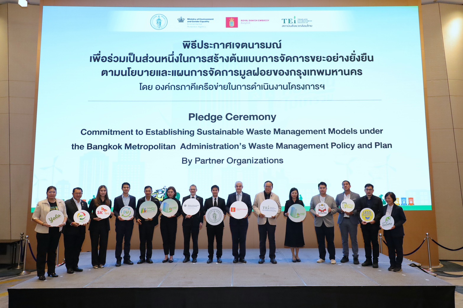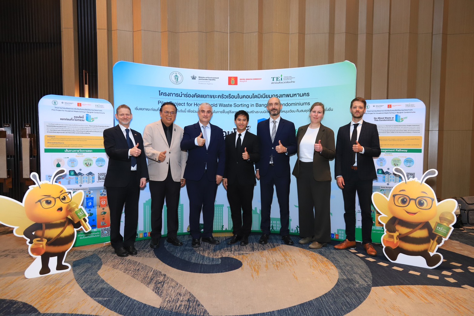 โดย “โครงการนำร่องคัดแยกขยะครัวเรือนในคอนโดมิเนียมกรุงเทพมหานคร” (Pilot Project for Household Waste Sorting in Bangkok Condominiums) เป็นโครงการที่เกิดจากความร่วมมือของ 4 หน่วยงานหลักที่มีบทบาทสำคัญในการร่วมแก้ไขปัญหาขยะและการจัดการขยะทั้งในเชิงระดับนโยบายและการปฏิบัติในพื้นที่ เพื่อให้เกิดการบริหารจัดการขยะอย่างยั่งยืน โดย สำนักสิ่งแวดล้อม กรุงเทพมหานคร องค์การพิทักษ์สิ่งแวดล้อมแห่งเดนมาร์ก (DEPA) สถานเอกอัครราชทูตเดนมาร์ก ประจำประเทศไทย และสถาบันสิ่งแวดล้อมไทย ได้ร่วมกันดำเนินโครงการ โดยมีเป้าหมายหลักในการสร้างต้นแบบระบบการจัดการขยะที่มีประสิทธิภาพสำหรับคอนโดมิเนียมในกรุงเทพมหานคร เพื่อนำผลการดำเนินงานของโครงการฯ ไปพัฒนาต่อยอดและขยายผลไปยัง 50 เขตของกรุงเทพมหานคร และพื้นที่อื่น ๆ รวมถึงภูมิภาคอาเซียน เพื่อเป็นการยกระดับมาตรฐานการจัดการขยะอย่างยั่งยืน นอกจากนี้ ภายในงานแถลงข่าวได้มีพิธีประกาศเจตนารมณ์เพื่อร่วมเป็นส่วนหนึ่งในการสร้างต้นแบบการจัดการขยะอย่างยั่งยืนตามนโยบายและแผนการจัดการมูลฝอยของกรุงเทพฯ โดยมีคอนโดมิเนียมในพื้นที่เขตคลองเตยและเขตวัฒนาของกรุงเทพฯ ที่เข้าร่วมภายใต้โครงการฯ จำนวน 10 แห่ง พร้อมกันนี้ ได้มีองค์กรภาคีเครือข่ายจากภาคส่วนต่าง ๆ มาร่วมประกาศเจตนารมณ์ อันเป็นการแสดงออกถึงความร่วมมือในการทำงาน เพื่อเป็นส่วนหนึ่งในการขยายผลไปยัง 50 เขตของกรุงเทพมหานคร และพื้นที่อื่น ๆ เพื่อเป็นการยกระดับมาตรฐานการจัดการขยะอย่างยั่งยืน ตามนโยบาย “ไม่เทรวม” และสอดคล้องตามข้อบัญญัติค่าธรรมเนียมการจัดการขยะฉบับใหม่ของกรุงเทพฯ