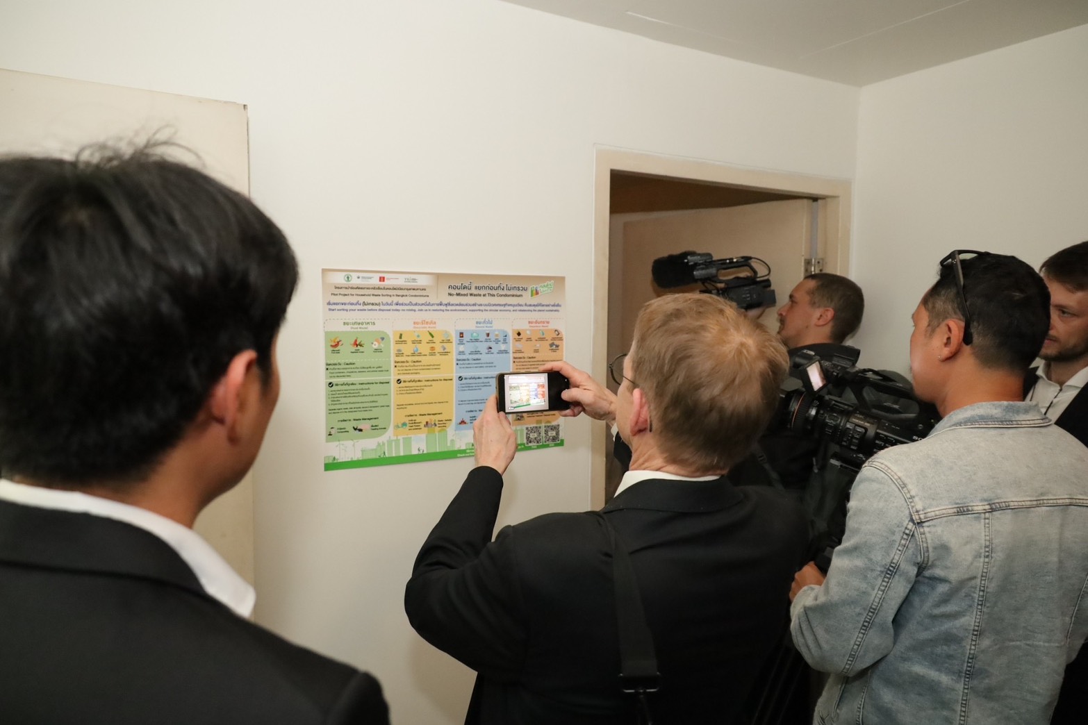 ช่วงการแถลงข่าวโครงการนำร่องคัดแยกขยะครัวเรือนในคอนโดมิเนียมกรุงเทพมหานคร ได้รับเกียรติจากผู้บริหารของ 4 หน่วยงานหลักที่ได้มาร่วมบูรณาการความร่วมมือในการดำเนินงานโครงการฯ เพื่อร่วมเป็นส่วนหนึ่งในการสร้างต้นแบบระบบการจัดการขยะที่มีประสิทธิภาพสำหรับคอนโดมิเนียมในกรุงเทพมหานคร ได้แก่ คุณพรพรหม วิกิตเศรษฐ์ ที่ปรึกษาของผู้ว่าราชการกรุงเทพมหานครและผู้บริหารด้านความยั่งยืนกรุงเทพมหานคร H.E. Mr. Danny Annan, Ambassador of Denmark to Thailand Mr. Jens Nytoft Rasmussen, Programme Manager, The Danish Environmental Protection Agency (DEPA) และ ดร.วิจารย์ สิมาฉายา ผู้อำนวยการสถาบันสิ่งแวดล้อมไทย