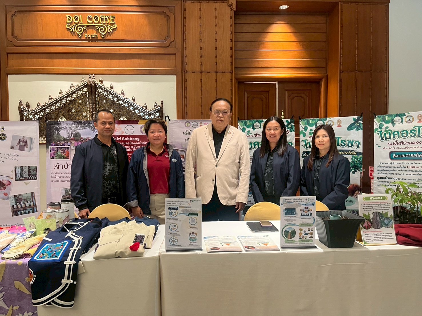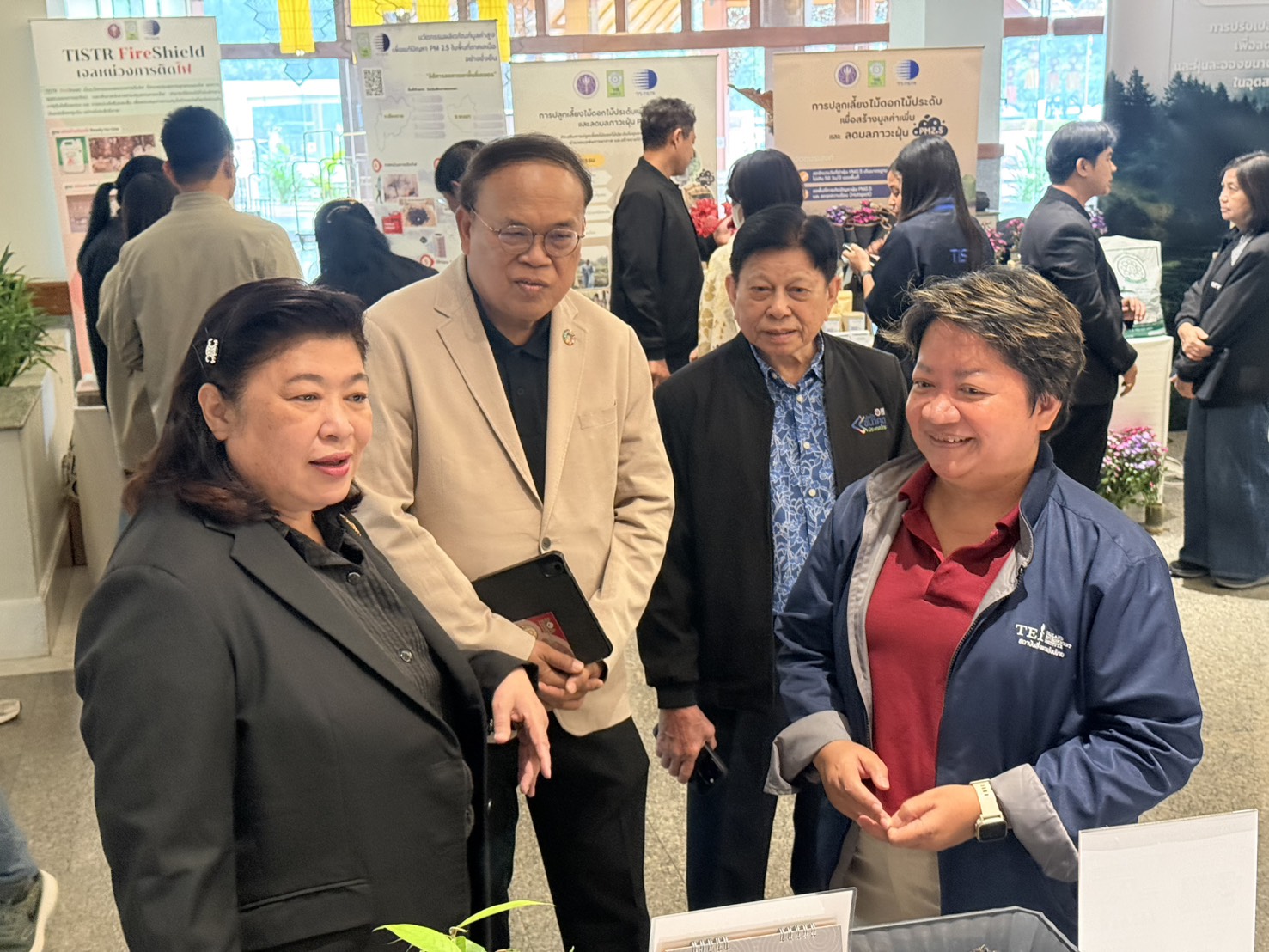 ทั้งนี้ สถาบันสิ่งแวดล้อมไทย ภายใต้การดำเนินงาน โครงการกลไกความร่วมมือขับเคลื่อนแผนปฏิบัติการร่วมยุทธศาสตร์ฟ้าใส (CLEAR Sky Strategy) เพื่อลดมลพิษหมอกควันข้ามแดน และโครงการพัฒนาความร่วมมือเมืองคู่ขนาน ไทย–ลาว–เมียนมา เพื่อขับเคลื่อนการจัดการและลดมลพิษหมอกควันข้ามแดน ภายใต้การสนับสนุนของสำนักงานพัฒนาการวิจัยการเกษตร (องค์การมหาชน) และสำนักงานการวิจัยแห่งชาติ (วช.) ได้ร่วมจัดนิทรรศการเพื่อนำเสนอผลการดำเนินงานของโครงการในระยะ 6 เดือนที่ผ่านมา โดยเน้นที่การสร้างกลไกความร่วมมือกับประเทศเพื่อนบ้านเพื่อลดการเผาในที่โล่ง และแนวทางการจัดการวัสดุเหลือใช้ทางการเกษตร อาทิ การสร้างลวดลายบนผ้าจากเศษใบไม้ การผลิตปุ๋ยอินทรีย์ และการทำแนวการไฟโดยผสานกับเห็ดไมคอร์ไรซา ซึ่งช่วยฟื้นฟูดิน เพิ่มความอุดมสมบูรณ์ และลดการเผาในพื้นที่เกษตรและพื้นที่ป่าชุมชน