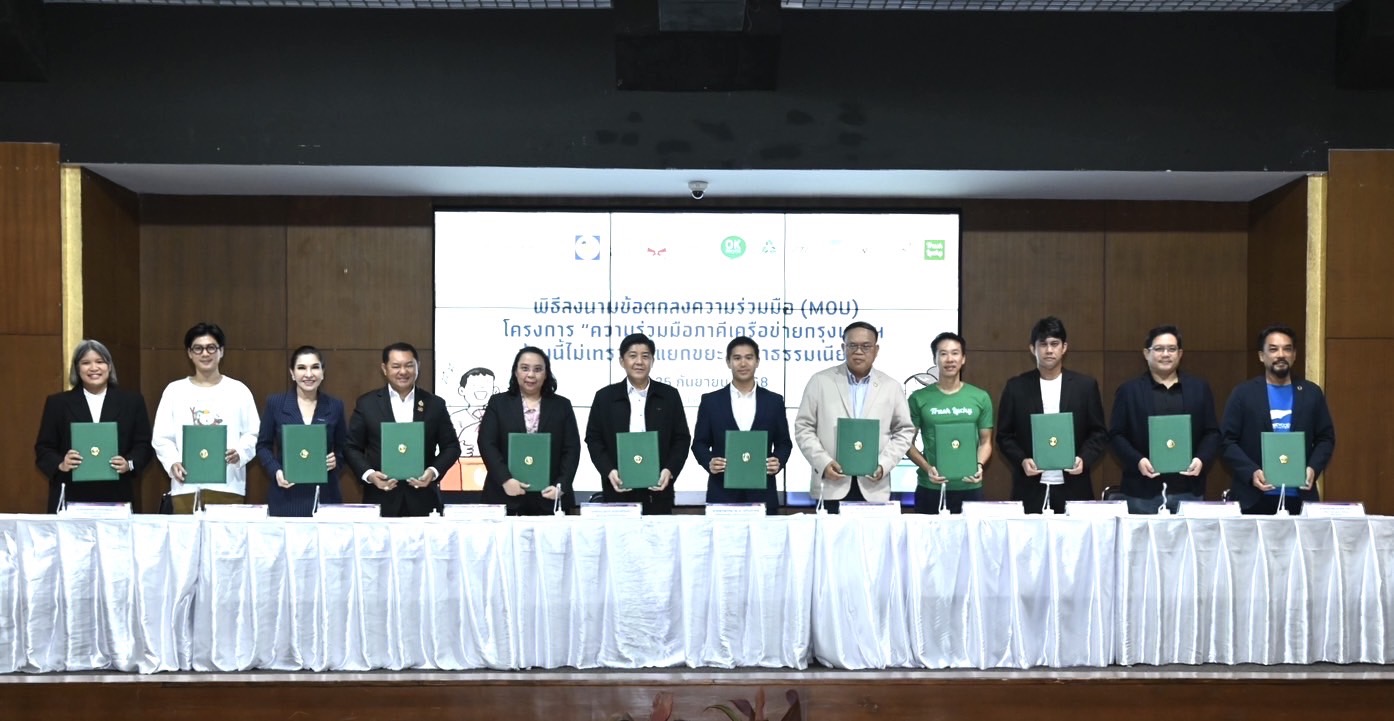 25 กันยายน 2568 ณ ศาลาว่าการกรุงเทพมหานคร ดินแดง การลงนามบันทึกข้อตกลงความร่วมมือฉบับนี้ จัดทำเพื่อยืนยันการเข้าร่วมโครงการ “ความร่วมมือภาคีเครือข่ายกรุงเทพฯ บ้านนี้ไม่เทรวม : แยกขยะลดค่าธรรมเนียม” นำโดยคุณพรพรหม ณ.ส.วิกิตเศรษฐ์ ที่ปรึกษาของผู้ว่ากรุงเทพมหานคร และผู้บริหารด้านความยั่งยืนของกรุงเทพมหานครเป็นประธาน และคุณประพาส เหลืองศิรินภา ผู้อำนวยการสำนักสิ่งแวดล้อม ในฐานะผู้แทนกรุงเทพฯ พร้อมด้วย 12 ภาคีเครือข่ายกรุงเทพมหานคร ได้แก่ บริษัท ซีพี แอ็กซ์ตร้า จำกัด (มหาชน) สมาคมซาเล้งและร้านรับซื้อของเก่า มูลนิธิมือวิเศษ ECOLIFE Khaya (Jak Reward Technology) OK Recycle Recycle Day Thailand Recycoex Wake up Waste Waste Buy Delivery และ Trash Lucky เพื่อร่วมส่งเสริม และสนับสนุน เผยแพร่ข้อมูลการลงทะเบียน BKK WASTE PAY ของภาคีเครือข่ายกรุงเทพฯ กับ กทม. โดยส่งหลักฐานให้ กทม. สามารถตรวจสอบได้ และการเชื่อมต่อข้อมูล (API) และส่งหลักฐานของประชาชนที่มีการซื้อขายหรือบริจาค ขยะรีไซเคิล ขยะอินทรีย์ ขยะอันตรายกับภาคีที่เข้าร่วมโครงการลงทะเบียนบ้านนี้ไม่เทรวมกับกรุงเทพมหานคร อันเป็นการส่งเสริมภาพลักษณ์ที่ดีในการร่วมมือกับเครือข่ายภาคเอกชน และ กทม.