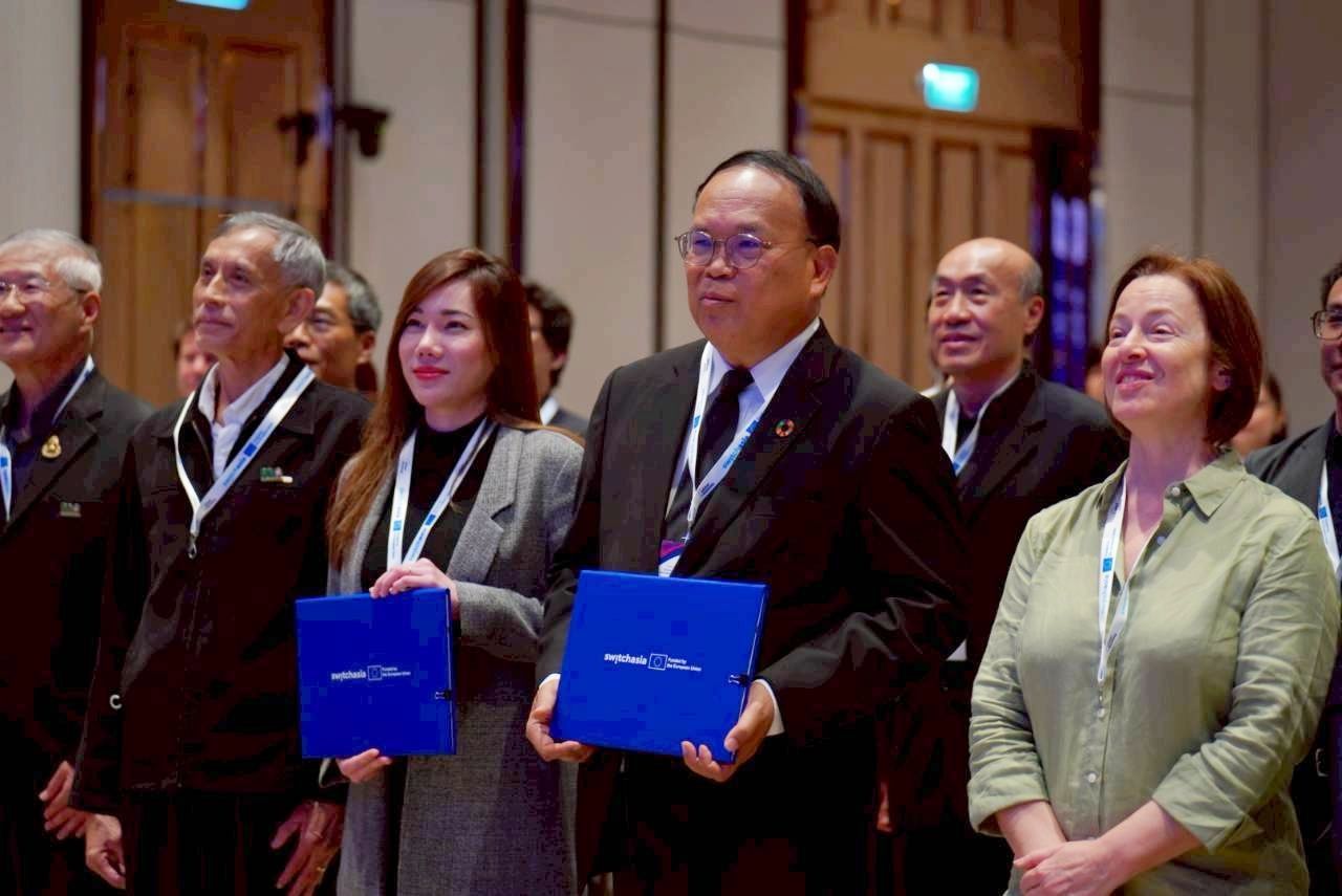ทั้งนี้ คุณภิญญดา เจริญสิน ผู้จัดการโครงการอาวุโสและรักษาการผู้อำนวยการฝ่ายเครือข่ายสิ่งแวดล้อมและการเปลี่ยนแปลงสภาพภูมิอากาศ และ Dr. Rene VAN BERKEL Co-convenor, ACEBA; senior expert, SWITCH-Asia PSC; and faculty, Thammasat University ได้ทำหน้าที่เป็นพยานในการลงนามบันทึกข้อตกลงความร่วมมือ (MOU)