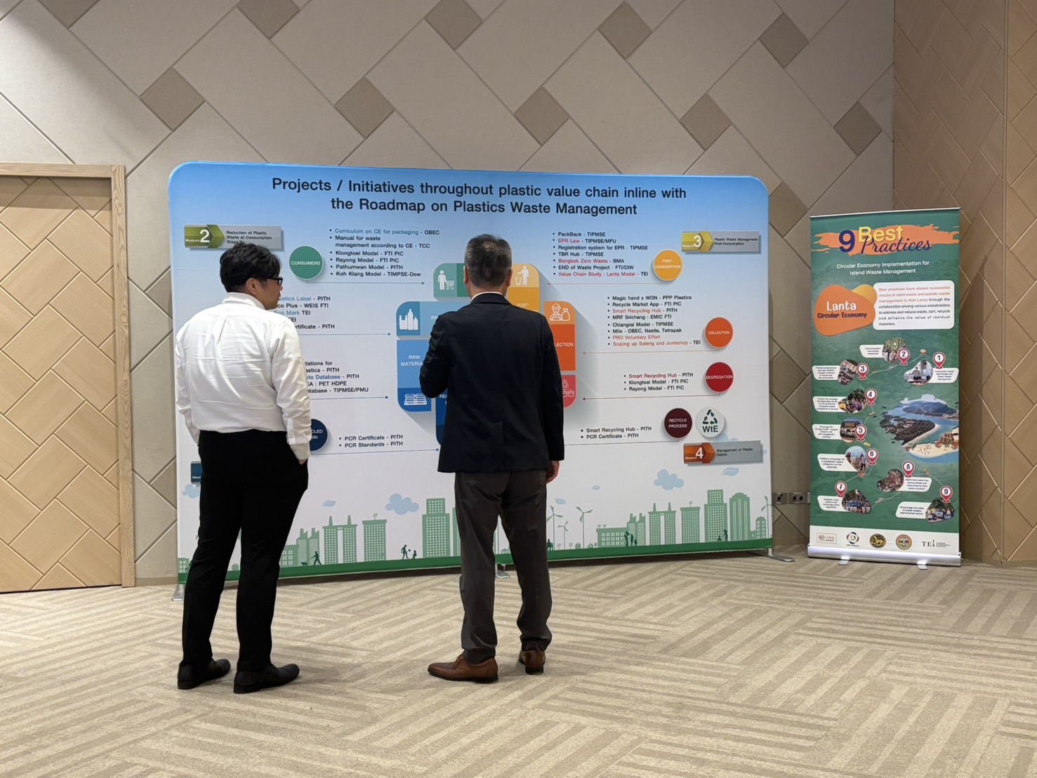 พร้อมทั้ง ภายในงานเสวนาดังกล่าว TEI ได้เข้าร่วมนำเสนอบูทนิทรรศการ “ผนึกกำลังความร่วมมือขององค์กรภาคีทุกภาคส่วนในการเดินหน้าแก้ไขปัญหาขยะพลาสติกของประเทศไทยบนพื้นฐานของการใช้ทรัพยากรธรรมชาติอย่างสมดุลตามหลักการเศรษฐกิจหมุนเวียน "Building Ecosystem for Plastic Circularity และ โมเดลการบริหารจัดการขยะและขยะพลาสติก ตามแนวคิดเศรษฐกิจหมุนเวียน เกาะลันตาจังหวัดกระบี่ เสนอแนวปฏิบัติที่ดีในการจัดการขยะเกาะ และแนวทางการจัดการขยะพลาสติกทะเล"