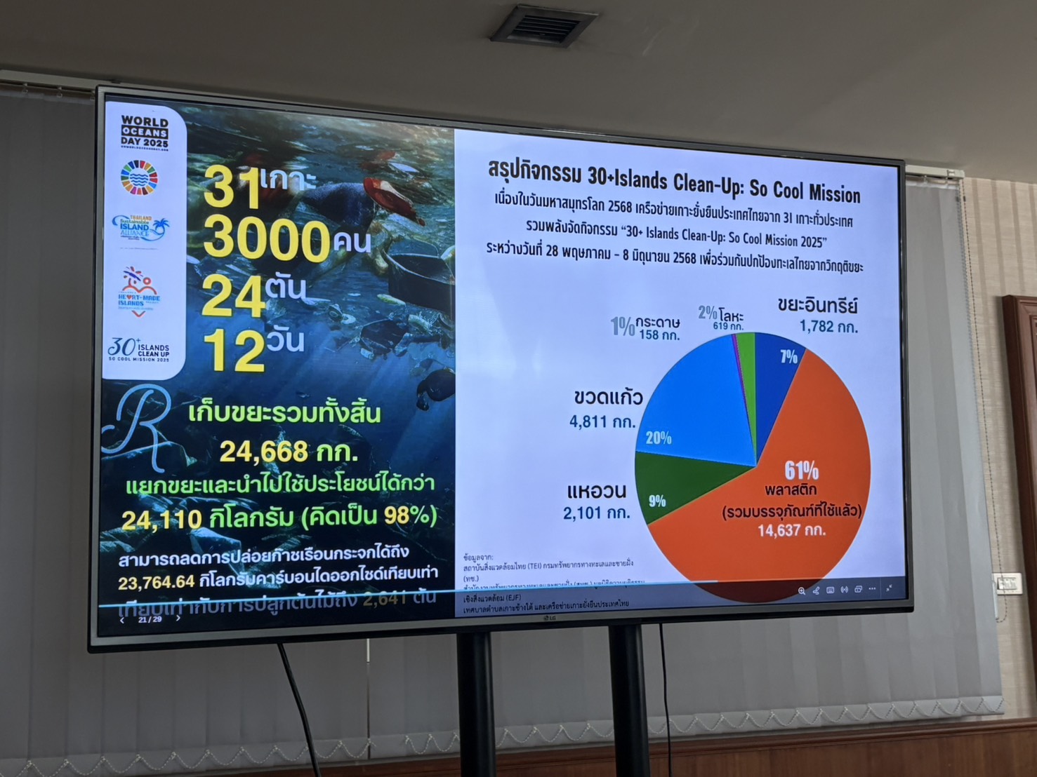 17 มิถุนายน 2568 สถาบันสิ่งแวดล้อมไทย หรือ TEI โดยคุณวิลาวรรณ น้อยภา ผู้อำนวยการฝ่ายทรัพยากรธรรมชาติ ร่วมประชุม (ร่าง) 30+ Islands Clean Up: So Cool Mission 2026 การยกระดับการเก็บขยะสู่ระบบและการจัดการเกาะยั่งยืน ภายใต้ความร่วมมือ MOU การลดการใช้พลาสติกแบบใช้ครั้งเดียวทิ้ง โฟม และหลอดพลาสติก ระหว่างกรมทรัพยากรทางทะเลและชายฝั่ง กรมการท่องเที่ยว เครือข่ายเกาะยั่งยืนประเทศไทย และสถาบันสิ่งแวดล้อมไทย ณ ห้องประชุมกรมทรัพยากรทางทะเลและชายฝั่ง กรุงเทพ