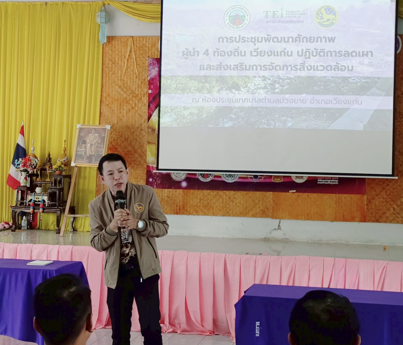 TEI จัดกระบวนการเรียนรู้และขับเคลื่อนชุมชนลดเผา พัฒนาศักยภาพผู้นำ 4 ท้องถิ่นอำเภอเวียงแก่นลดเผา มุ่งการจัดการสิ่งแวดล้อม ลดมลพิษ