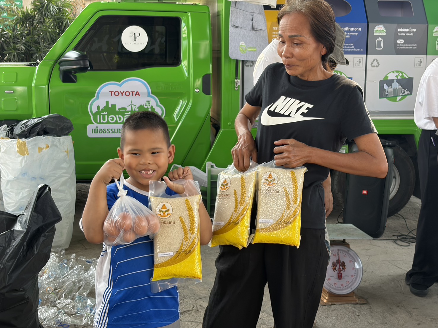 นอกจากนี้ กิจกรรม “รถ เปลี่ยน โลก” ยังมุ่งเน้นการถ่ายทอดองค์ความรู้แก่ประชาชนเกี่ยวกับการคัดแยกขยะอย่างถูกวิธี การเพิ่มคุณค่าให้กับวัสดุเหลือใช้ และกระบวนการนำขยะเข้าสู่การแปรรูปเป็นผลิตภัณฑ์ที่สามารถใช้ประโยชน์ในชีวิตประจำวันได้จริง ควบคู่กับการสร้างแรงจูงใจเชิงบวก โดยเปิดโอกาสให้ประชาชนทั่วไปนำขยะรีไซเคิลที่สะอาดมาแลกรับของรางวัล เช่น ข้าวหอมมะลิ ไข่ไก่ และของอุปโภคบริโภค โดยตลอดระยะเวลาจัดกิจกรรมสามารถรวบรวมขยะรีไซเคิลได้มากกว่า 10 ตัน ช่วยลดการปล่อยก๊าซเรือนกระจกได้มากกว่า 15 ตันคาร์บอนไดออกไซเทียบเท่า ทั้งนี้ เพื่อส่งเสริมพฤติกรรมการจัดการขยะที่เหมาะสม ซึ่งสอดคล้องกับแนวคิดเศรษฐกิจหมุนเวียน และสนับสนุนการพัฒนาที่ยั่งยืนในระยะยาว