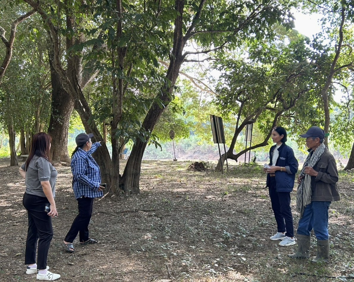 คุณวิลาวรรณ ได้นำเสนอแนวทางในการมีกลไกคณะทำงานการประสานความร่วมมือ การระดมความร่วมมือที่สอดคล้องกับเป้าหมายจังหวัด ด้วยมาตรการลดการเผาในพื้นที่ ป้องกันและลดปัญหาหมอกควันข้ามแดน สำหรับหารือให้เกิดความชัดเจนในการประชุมหารือกรอบความร่วมมือกลไกชายแดนการบริหารจัดการไฟป่าและหมอกควันข้ามแดน ครั้งที่ 3 ณ อำเภอเทิง จังหวัดเชียงราย ที่จะถึงนี้ พร้อมนี้ ผู้นำและคณะนักวิจัย ได้ลงพื้นที่ศึกษาดูงาน “ป่าส้มแสง บ้านป่าข่า” เป็นส่วนหนึ่งของผืนป่าลุ่มน้ำอิง มีเนื้อที่ประมาณ 85 ไร่ มีลักษณะเป็นป่าชุ่มน้ำและระบบนิเวศของป่าส้มแสงที่ยืนต้นและแช่น้ำช่วงฤดูน้ำหลาก และเป็นแหล่งอนุบาลพันธุ์ปลาและสัตว์น้ำจากแม่น้ำอิงและแม่น้ำโขงในช่วงน้ำลด มีอัตลักษณ์หนึ่งเดียวของภูมิภาคอาเซี่ยน และ “ป่าชุมชน บ้านงามเมือง” มีสภาพป่าเป็น 2 ปะเภท คือ ป่าภูเขาและป่าชุมชน รวมเนื้อที่กว่า 2,000 ไร่ ชุมชนใช้สอยเป็นพื้นที่ป่าต้นน้ำ ป่าใช้สอย แหล่งอาหาร สมุนไพร และสร้างรายได้ ซึ่งมีความหลากหลายของระบบนิเวศด้านพันธุ์ไม้ พันธุ์ปลา สัตว์น้ำ และสัตว์ป่า โดยมีชุมชนมีส่วนร่วมร่วมกันดูแลรักษามากว่า 20 ปี ซึ่งมีผลและบทบาทต่อการการต่อยอดการบริหารจัดการเป็นแนวป้องกันไฟป่าที่สำคัญได้ต่อไป