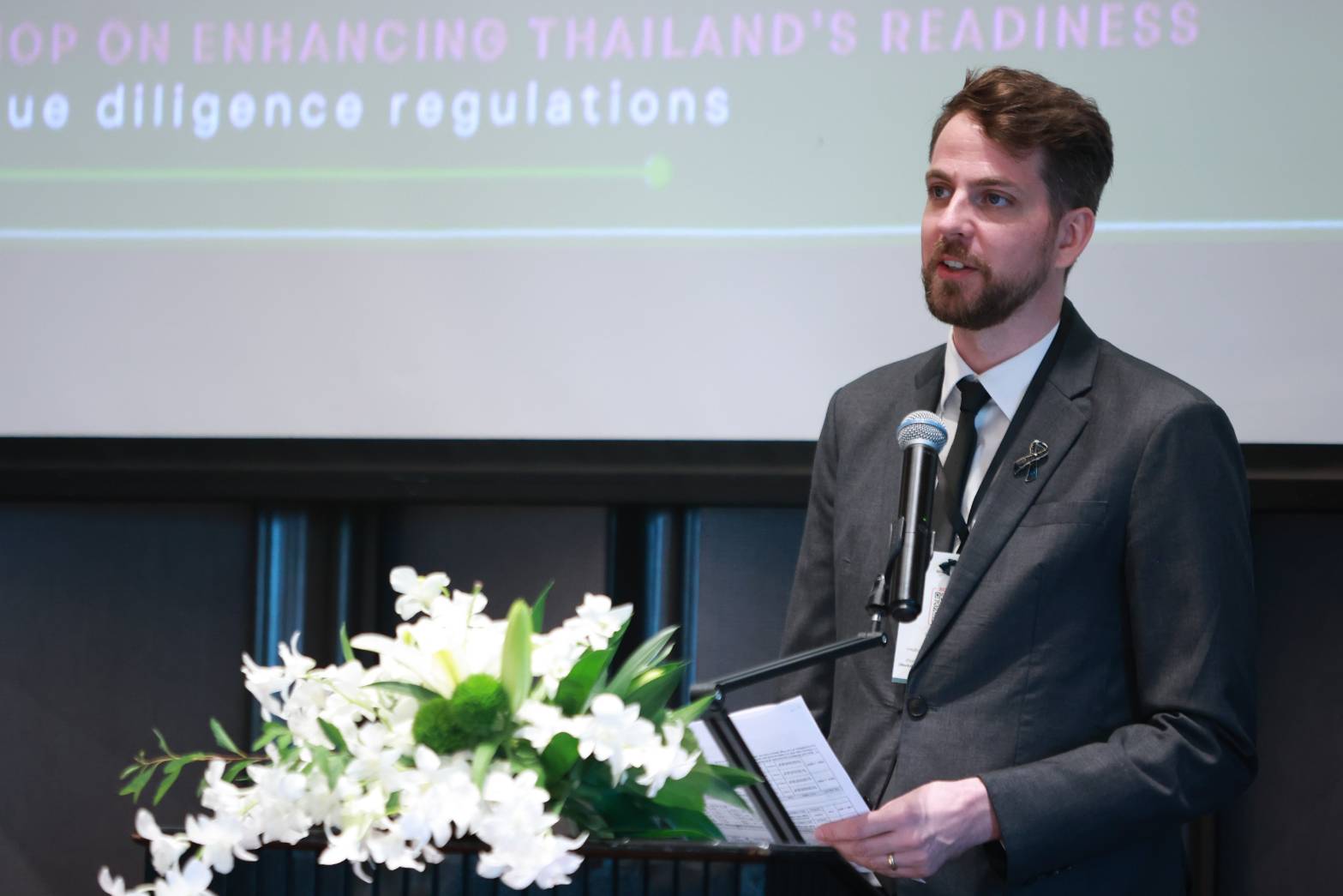 ดร.วิจารย์ สิมาฉายา ผู้อำนวยการ TEI กล่าวย้ำว่า แนวโน้มการค้าโลกกำลังเปลี่ยนผ่านสู่ระบบที่ให้ความสำคัญกับ “ความยั่งยืน” เป็นหัวใจหลัก กฎระเบียบ EU จึงเป็นทั้ง “ความท้าทาย” และ “โอกาส” ที่จะผลักดันไทยยกระดับมาตรฐานการผลิตและการบริหารจัดการห่วงโซ่อุปทานให้เทียบเท่าสากล ทั้งในมิติสิ่งแวดล้อมและสิทธิมนุษยชน สอดคล้องกับ Mr. Julian Tost รองผู้อำนวยการโครงการ GIZ Thailand ที่กล่าวว่าโครงการนี้มุ่งสนับสนุนประเทศคู่ค้าของสหภาพยุโรป โดยเฉพาะในภาคเกษตร ให้สามารถดำเนินธุรกิจได้ตามหลักการตรวจสอบสถานะ (Due Diligence) ของ EU ได้อย่างมีประสิทธิภาพ