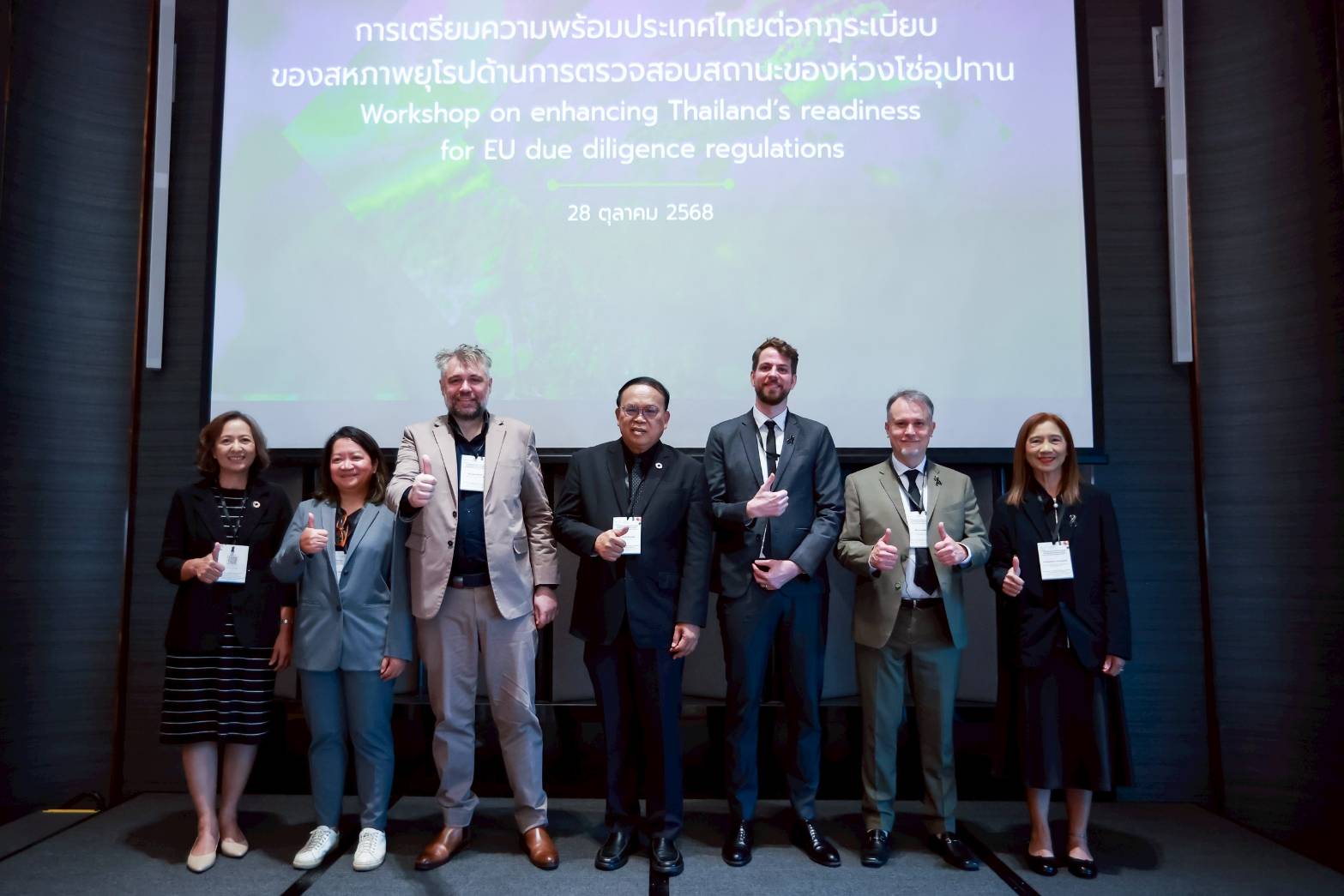 ในการประชุมยังได้มีการบรรยายจากผู้เชี่ยวชาญระดับนานาชาติ ได้แก่ Mr. Michael Bucki ที่ปรึกษาด้านการเปลี่ยนผ่านสีเขียวจากคณะผู้แทนสหภาพยุโรปประจำประเทศไทย และ Dr. Inti Schubert ที่ปรึกษาอาวุโสจาก GIZ เยอรมนี พร้อมการนำเสนอผลการศึกษาเบื้องต้นของโครงการ และจัดกิจกรรมระดมความคิดเห็นใน 3 กลุ่มสินค้าเกษตรหลัก ได้แก่ ไม้และผลิตภัณฑ์ไม้ ยางพารา และปาล์มน้ำมัน รวมถึงกลุ่มสนับสนุนด้านสิ่งแวดล้อม สิทธิมนุษยชน และระบบตรวจสอบย้อนกลับ เพื่อระบุความท้าทายและแนวทางปรับตัวของไทยให้สอดคล้องกับกฎระเบียบของ EU
