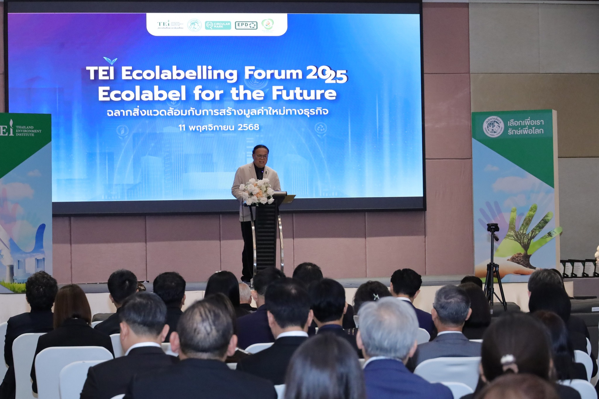 11 พฤศจิกายน 2568 สถาบันสิ่งแวดล้อมไทย (TEI) จัดงานสัมมนา “TEI-Ecolabelling Forum 2025: Ecolabel for the Future ฉลากสิ่งแวดล้อมกับการสร้างมูลค่าใหม่ทางธุรกิจ” ตอกย้ำบทบาทของ "ฉลากเขียวและฉลากสิ่งแวดล้อม" ที่วันนี้คือ เครื่องมือทางเศรษฐกิจที่จำเป็น สำหรับภาคธุรกิจไทยในการแข่งขัน และเป็นกลไกหลักในการขับเคลื่อนการผลิตและการบริโภคที่ยั่งยืน