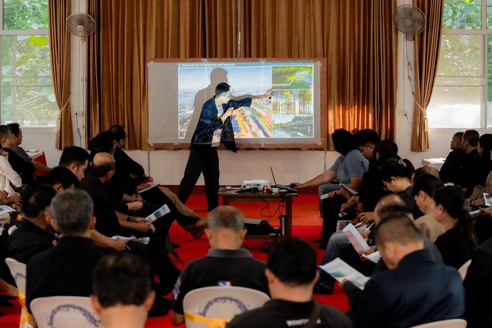 การประชุมได้รับเกียรติจาก Assoc. Prof. Jianbin Wang, Ph.D. (Monash University) นำเสนอการใช้แนวคิด Nature-based Solutions (NbS) ในการฟื้นฟูพื้นที่ชุ่มน้ำเพื่อตั้งรับต่อการเปลี่ยนแปลงสภาพภูมิอากาศ ภัยพิบัติ และการขยายตัวของเมือง พร้อมตัวอย่างกรณีศึกษานานาชาติที่ประยุกต์ใช้ได้กับบริบทเวียงหนองหล่ม