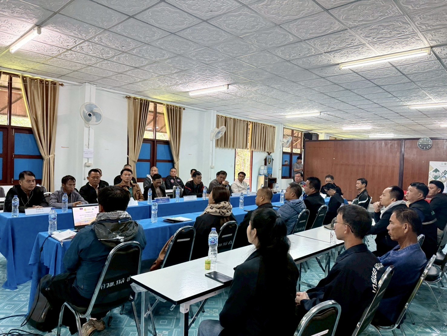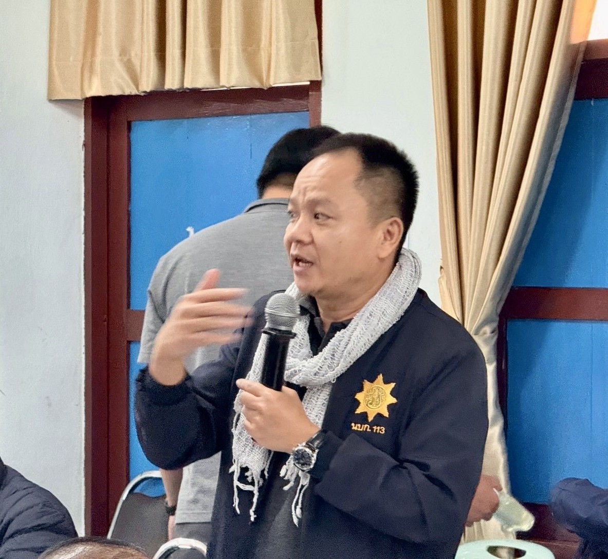 คณะผู้นำจากเมืองคอบ ร่วมกิจกรรม ได้แก่ ท่านสมัคร ลิดสะถาน รองประธานคณะกรรมการปกครองเมือง เมืองคอบ แขวงไชยะบุลี สปป.ลาว และเจ้าหน้าที่ส่วนงานเกี่ยวข้องด้านกสิกรรมและสิ่งแวดล้อม นายบ้าน พร้อมด้วย เจ้าหน้าที่งานความมั่นคง ผู้นำท้องที่ ป่าไม้ อำเภอภูซาง ทรัพยากรธรรมชาติและสิ่งแวดล้อม จังหวัดพะเยา เข้าร่วมการแลกเปลี่ยนข้อมูลและสถานการณ์ด้านการจัดการหมอกควันไฟป่า การดำเนินการป้องกันและควบคุมไฟป่าและหมอกควันตามนโยบายและมาตรการของแต่ละพื้นที พร้อมการศึกษาดูงานและแลกเปลี่ยนการส่งเสริมอาชีพและเกษตรลดการเผาในพื้นที่สูงวาวีแบบโครงการหลวง โดยได้รับเกียรติจากนายปฤษฎางค์ สามัคคีนิชย์ นายอำเภอแม่สรวย และนายอภิสิทธิ์ จันทร์คำ ปลัดอำเภอภูซาง ร่วมกล่าวต้อนรับคณะดูงาน