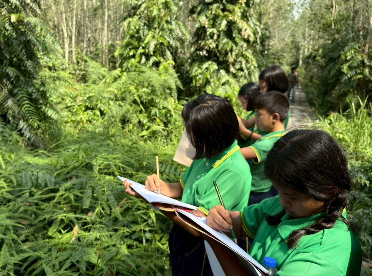 การสร้างฐานความยั่งยืนของพื้นที่ยังต้องเริ่มจากคนรุ่นใหม่ กิจกรรมเสริมสร้างการเรียนรู้และจิตสำนึกด้านการอนุรักษ์ในหัวข้อ “รู้จักป่าพรุคันธุลีผ่านงานศิลป์” จึงถูกออกแบบควบคู่กับกระบวนการเชิงนโยบาย ในรูปแบบ สำรวจ–เรียนรู้–สนุก เพื่อทำความเข้าใจความหลากหลายทางชีวภาพของป่าพรุคันธุลี ทั้งพืชและสัตว์ที่มีความสำคัญและพบเฉพาะถิ่น ก่อนถ่ายทอดความรู้สึกและมุมมองผ่านงานวาดภาพในหัวข้อความหลากหลายทางชีวภาพของป่าพรุคันธุลี