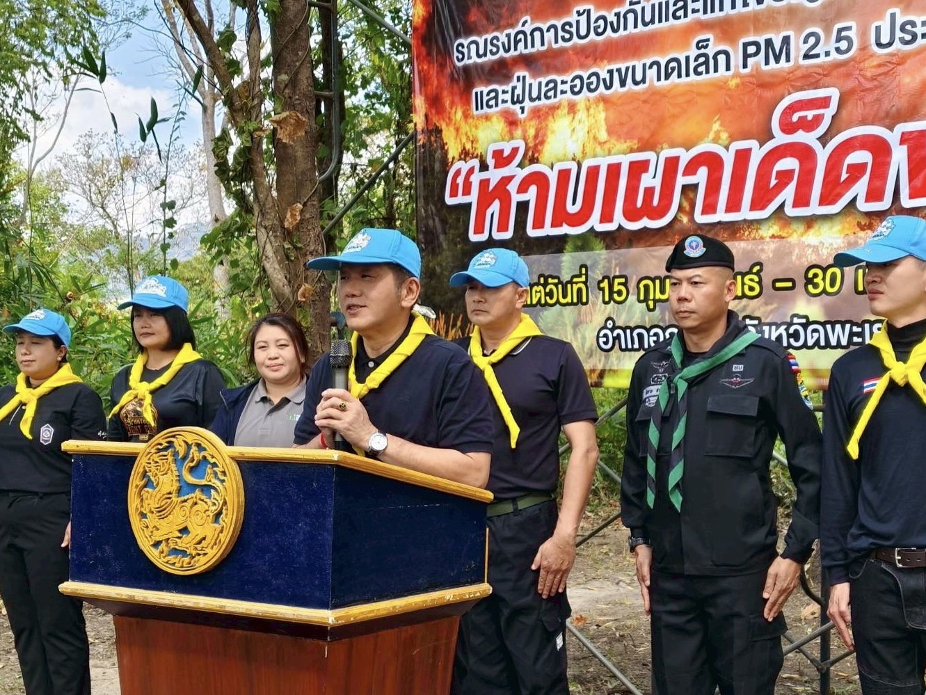 ทั้งนี้ อำเภอภูซางเป็น 1 ใน 9 พื้นที่เป้าหมายเมืองคู่ขนานของโครงการฯ ในการขับเคลื่อนการจัดการและลดมลพิษหมอกควันข้ามแดน โดยกิจกรรมครั้งนี้ ได้รับเกียรติจากนายบัญฑูร ประดิษฐสุวรรณ นายอำเภอภูซาง เป็นประธานเปิดกิจกรรม พร้อมด้วยผู้แทนจากหน่วยงานที่เกี่ยวข้อง จัดขึ้นเพื่อรณรงค์และสร้างความตระหนักรู้ ลดความเสี่ยงและเตรียมความพร้อมรับมือสถานการณ์ไฟป่าและหมอกควันการเกิดไฟป่าในห้วงเวลาวิกฤติในฤดูแล้งที่จะมาถึง ส่งเสริมการมีส่วนร่วมของทุกภาคส่วนในการป้องกันและแก้ไขปัญหาไฟป่า หมอกควัน และฝุ่นละอองขนาดเล็ก PM2.5 ซึ่งส่งผลกระทบต่อสุขภาพ สิ่งแวดล้อม และคุณภาพชีวิตของประชาชนในพื้นที่ โดยมุ่งเน้นการบูรณาการความร่วมมือระหว่างหน่วยงานภาครัฐ ภาคประชาชน และภาคีเครือข่ายในระดับชุมชน ในการผลักดันและสอดคล้องกับมาตรการลดการเผาในพื้นที่ของจังหวัด ระหว่างวันที่ 14 กุมภาพันธ์ - 14 เมษายน 2569 เพื่อป้องกันและลดความเสี่ยงจากการเกิดไฟป่า หมอกควัน และปัญหาฝุ่นละอองขนาดเล็ก PM2.5