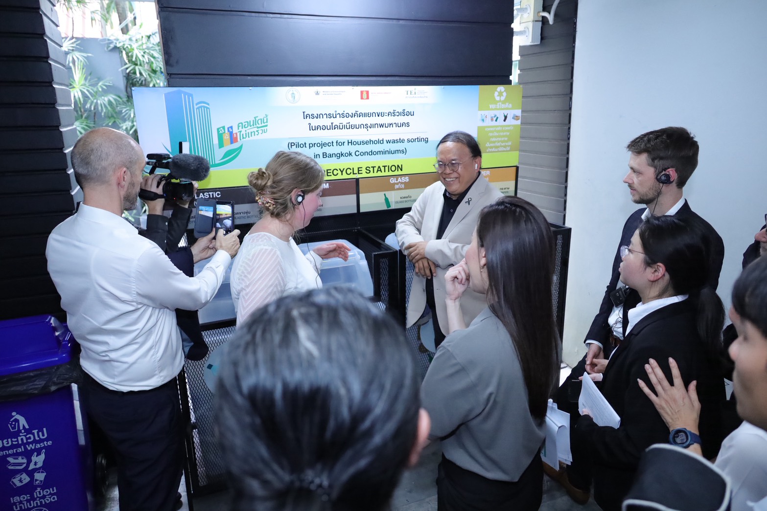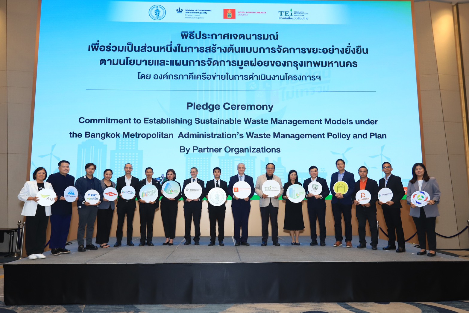 โดย “โครงการนำร่องคัดแยกขยะครัวเรือนในคอนโดมิเนียมกรุงเทพมหานคร” (Pilot Project for Household Waste Sorting in Bangkok Condominiums) เป็นโครงการที่เกิดจากความร่วมมือของ 4 หน่วยงานหลักที่มีบทบาทสำคัญในการร่วมแก้ไขปัญหาขยะและการจัดการขยะทั้งในเชิงระดับนโยบายและการปฏิบัติในพื้นที่ เพื่อให้เกิดการบริหารจัดการขยะอย่างยั่งยืน โดย สำนักสิ่งแวดล้อม กรุงเทพมหานคร องค์การพิทักษ์สิ่งแวดล้อมแห่งเดนมาร์ก (DEPA) สถานเอกอัครราชทูตเดนมาร์ก ประจำประเทศไทย และสถาบันสิ่งแวดล้อมไทย ได้ร่วมกันดำเนินโครงการ โดยมีเป้าหมายหลักในการสร้างต้นแบบระบบการจัดการขยะที่มีประสิทธิภาพสำหรับคอนโดมิเนียมในกรุงเทพมหานคร เพื่อนำผลการดำเนินงานของโครงการฯ ไปพัฒนาต่อยอดและขยายผลไปยัง 50 เขตของกรุงเทพมหานคร และพื้นที่อื่น ๆ รวมถึงภูมิภาคอาเซียน เพื่อเป็นการยกระดับมาตรฐานการจัดการขยะอย่างยั่งยืน นอกจากนี้ ภายในงานแถลงข่าวได้มีพิธีประกาศเจตนารมณ์เพื่อร่วมเป็นส่วนหนึ่งในการสร้างต้นแบบการจัดการขยะอย่างยั่งยืนตามนโยบายและแผนการจัดการมูลฝอยของกรุงเทพฯ โดยมีคอนโดมิเนียมในพื้นที่เขตคลองเตยและเขตวัฒนาของกรุงเทพฯ ที่เข้าร่วมภายใต้โครงการฯ จำนวน 10 แห่ง พร้อมกันนี้ ได้มีองค์กรภาคีเครือข่ายจากภาคส่วนต่าง ๆ มาร่วมประกาศเจตนารมณ์ อันเป็นการแสดงออกถึงความร่วมมือในการทำงาน เพื่อเป็นส่วนหนึ่งในการขยายผลไปยัง 50 เขตของกรุงเทพมหานคร และพื้นที่อื่น ๆ เพื่อเป็นการยกระดับมาตรฐานการจัดการขยะอย่างยั่งยืน ตามนโยบาย “ไม่เทรวม” และสอดคล้องตามข้อบัญญัติค่าธรรมเนียมการจัดการขยะฉบับใหม่ของกรุงเทพฯ
