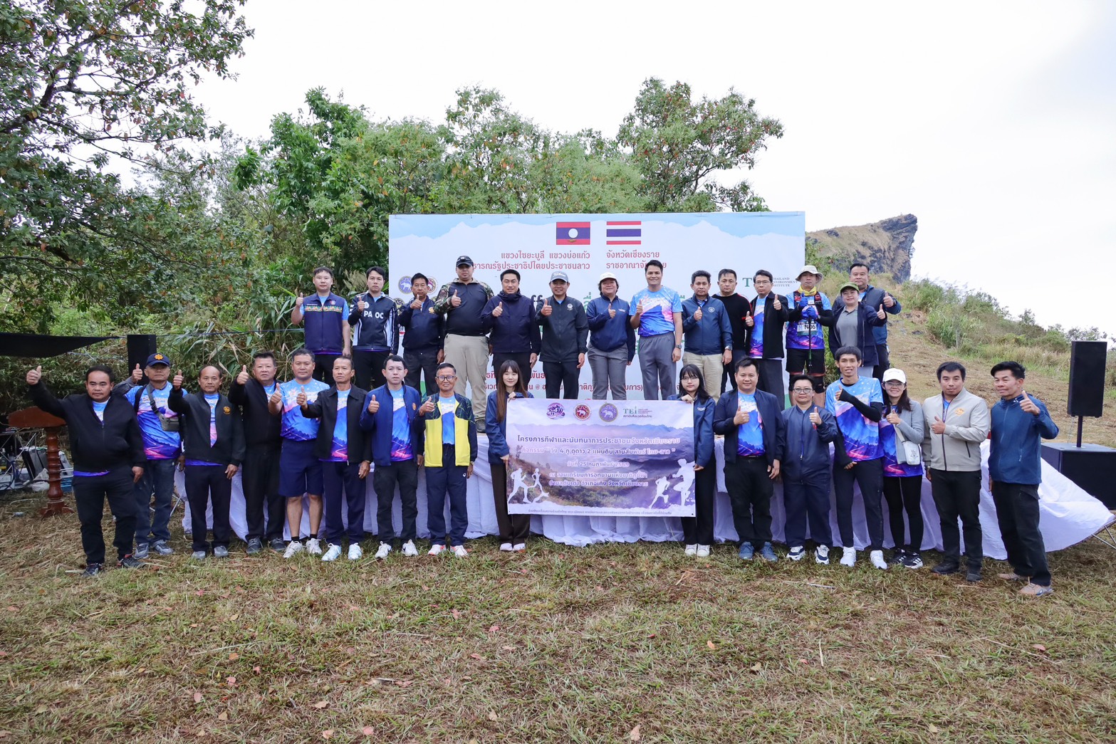 สถาบันสิ่งแวดล้อมไทย หรือ TEI โดยโครงการพัฒนาความร่วมมือเมืองคู่ขนาน ไทย–ลาว–เมียนมา ขับเคลื่อนการจัดการและลดมลพิษหมอกควันข้ามแดน ภายใต้การสนับสนุนของสำนักงานพัฒนาการวิจัยการเกษตร (สวก.) และโครงการกลไกความร่วมมือขับเคลื่อนแผนปฏิบัติการร่วมยุทธศาสตร์ฟ้าใส (CLEAR Sky Strategy) ภายใต้การสนับสนุนของ สำนักงานการวิจัยแห่งชาติ (วช.) นำโดย ดร. จีรนุช ศักดิ์คำดวง หัวหน้าโครงการกลไกขับเคลื่อนความร่วมมือฯ พร้อมคณะวิจัย ร่วมกับองค์การบริหารส่วนจังหวัดเชียงราย และอุทยานแห่งชาติภูชี้ฟ้า (เตรียมการ) จัดกิจกรรม “วิ่ง 4 ภู ดูดาว 2 แผ่นดิน แนวกันไฟสัมพันธ์ไทย–ลาว” เพื่อบูรณาการการท่องเที่ยวเชิงนิเวศเข้ากับการป้องกันไฟป่าและการจัดการหมอกควันข้ามแดนอย่างเป็นรูปธรรม โดยใช้พลังของกิจกรรมการวิ่งเป็นสื่อกลางสร้างความตระหนักรู้แก่สาธารณะ เสริมการมีส่วนร่วมของชุมชน และผลักดันมาตรการป้องกันไฟป่าในพื้นที่ชายแดนไทย–ลาวอย่างยั่งยืน