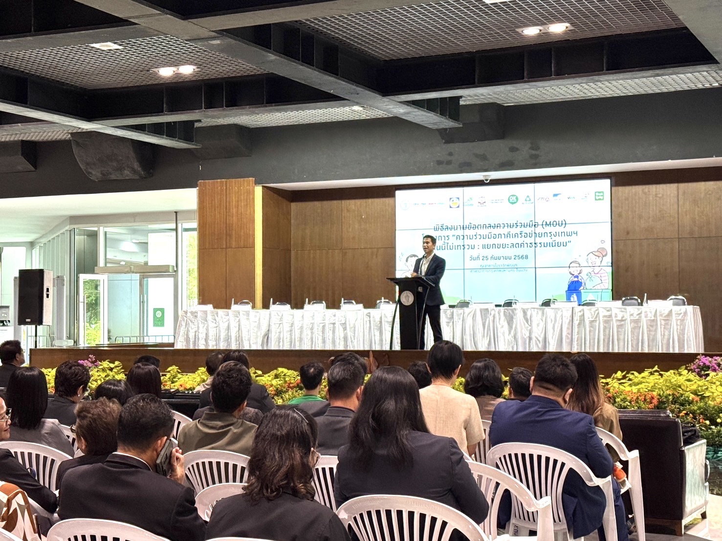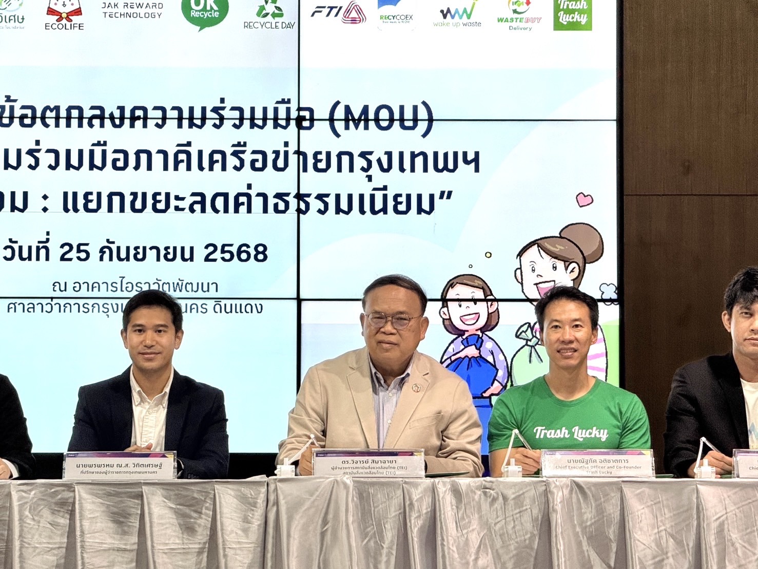 25 กันยายน 2568 ณ ศาลาว่าการกรุงเทพมหานคร ดินแดง การลงนามบันทึกข้อตกลงความร่วมมือฉบับนี้ จัดทำเพื่อยืนยันการเข้าร่วมโครงการ “ความร่วมมือภาคีเครือข่ายกรุงเทพฯ บ้านนี้ไม่เทรวม : แยกขยะลดค่าธรรมเนียม” นำโดยคุณพรพรหม ณ.ส.วิกิตเศรษฐ์ ที่ปรึกษาของผู้ว่ากรุงเทพมหานคร และผู้บริหารด้านความยั่งยืนของกรุงเทพมหานครเป็นประธาน และคุณประพาส เหลืองศิรินภา ผู้อำนวยการสำนักสิ่งแวดล้อม ในฐานะผู้แทนกรุงเทพฯ พร้อมด้วย 12 ภาคีเครือข่ายกรุงเทพมหานคร ได้แก่ บริษัท ซีพี แอ็กซ์ตร้า จำกัด (มหาชน) สมาคมซาเล้งและร้านรับซื้อของเก่า มูลนิธิมือวิเศษ ECOLIFE Khaya (Jak Reward Technology) OK Recycle Recycle Day Thailand Recycoex Wake up Waste Waste Buy Delivery และ Trash Lucky เพื่อร่วมส่งเสริม และสนับสนุน เผยแพร่ข้อมูลการลงทะเบียน BKK WASTE PAY ของภาคีเครือข่ายกรุงเทพฯ กับ กทม. โดยส่งหลักฐานให้ กทม. สามารถตรวจสอบได้ และการเชื่อมต่อข้อมูล (API) และส่งหลักฐานของประชาชนที่มีการซื้อขายหรือบริจาค ขยะรีไซเคิล ขยะอินทรีย์ ขยะอันตรายกับภาคีที่เข้าร่วมโครงการลงทะเบียนบ้านนี้ไม่เทรวมกับกรุงเทพมหานคร อันเป็นการส่งเสริมภาพลักษณ์ที่ดีในการร่วมมือกับเครือข่ายภาคเอกชน และ กทม.