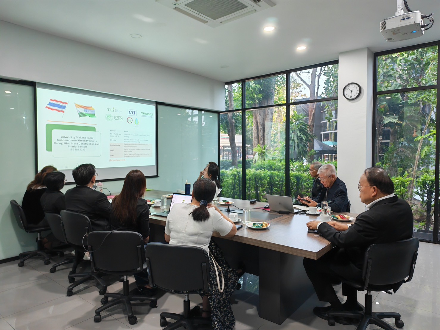 26 ธันวาคม 2568 สถาบันสิ่งแวดล้อมไทย หรือ TEI นำโดย ดร.วิจารย์ สิมาฉายา ผู้อำนวยการสถาบันสิ่งแวดล้อมไทย ดร.ฉัตรตรี ภูรัต ผู้อำนวยการฝ่ายฉลากเขียวและฉลากสิ่งแวดล้อม และทีมนักวิจัย ร่วมหารือแนวทางความร่วมมือกับสถาบันอาคารเขียวไทย (TGBI) เกี่ยวกับฉลากแสดงข้อมูลสิ่งแวดล้อมของผลิตภัณฑ์ (EPD)โดยมี ศ.ดร. อรรจน์ เศรษฐบุตร ประธานสถาบันอาคารเขียวไทย รศ.ดร. ชนิกานต์ ยิ้มประยูร เลขานุการสถาบันอาคารเขียวไทย คุณอมรรัตน์ เดชอุดมทรัพย์ กรรมการฝ่ายประชาสัมพันธ์และที่ปรึกษาสถาบันอาคารเขียวไทย พร้อมด้วย รศ.ดร.ธำรงรัตน์ มุ่งเจริญ ประธานมูลนิธิเพื่อส่งเสริมการผลิตและการบริโภคอย่างยั่งยืนแห่งเอเซียแปซิฟิก กรรมการบริหารสถาบันสิ่งแวดล้อมไทย และ ดร.ไชยยศ บุญญกิจ ผู้ทรงคุณวุฒิ คณะกรรมการฉลาก EPD และฉลากผลิตภัณฑ์หมุนเวียน