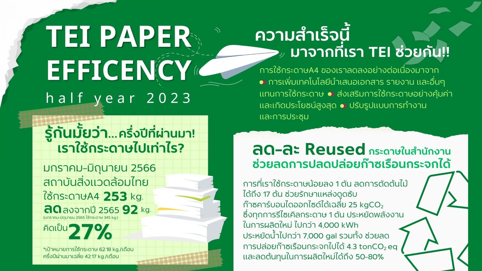 ในปี 2566 นี้ TEI ได้ตั้งเป้าหมายด้านสิ่งแวดล้อมทั้ง 6 ด้าน ขึ้น เพื่อให้สอดคล้องกับการดำเนินงานจริงในสำนักงาน ดังนี้
