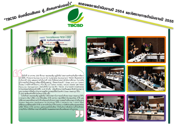 "TBCSD ขับเคลื่อนสังคม สู่...สังคมคาร์บอนต่ำ" แถลงผลการดำเนินงานปี 2554 และทิศทางการดำเนินงานปี 2555