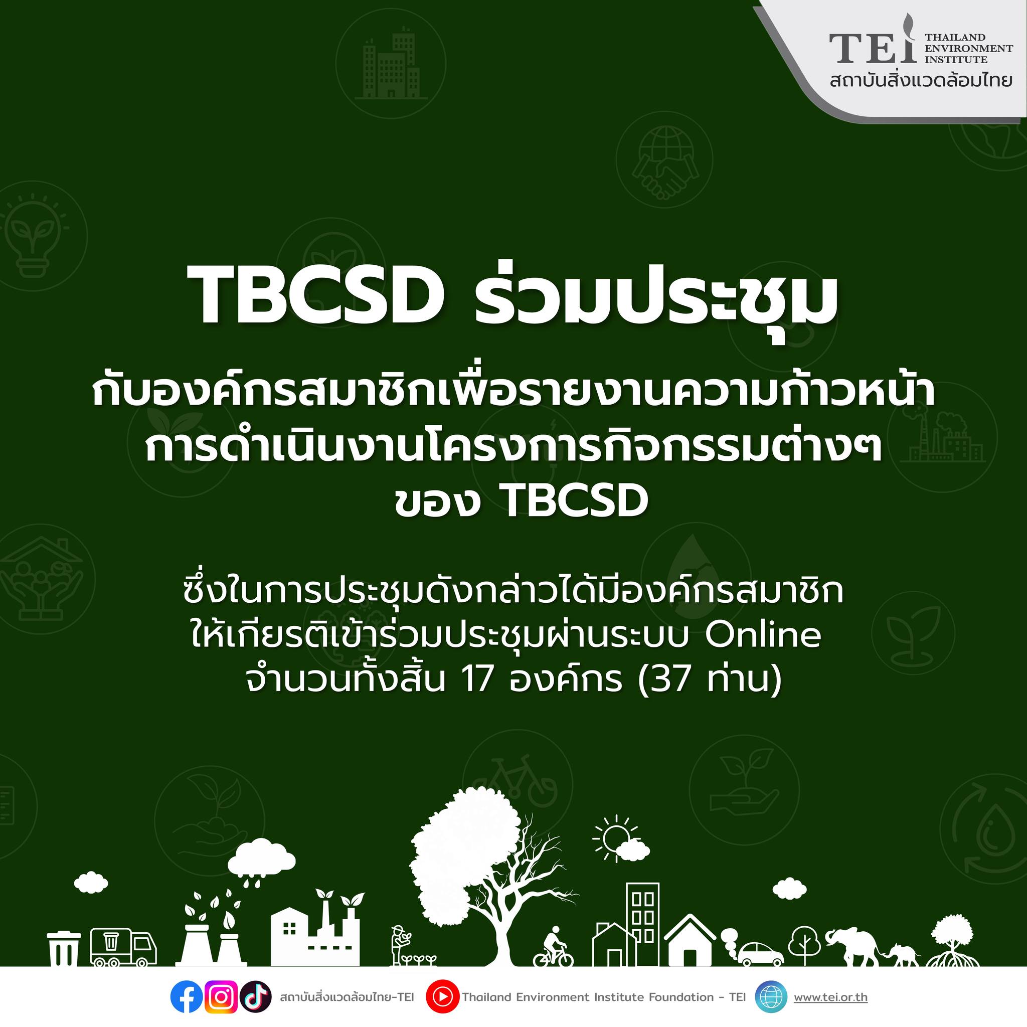ที่ผ่านมา รวมถึง การพิจารณารายละเอียดเกี่ยวกับการดำเนินงานการจัดงาน TBCSD ประจำปี พ.ศ. 2568 โดยการประชุมในครั้งนี้ ดร.วิจารย์ สิมาฉายา ผู้อำนวยการสถาบันสิ่งแวดล้อมไทย และเลขาธิการองค์กรธุรกิจเพื่อการพัฒนาอย่างยั่งยืน เป็นประธานการประชุม ซึ่งในการประชุมดังกล่าวได้มีองค์กรสมาชิกให้เกียรติเข้าร่วมประชุมผ่านระบบ Online จำนวนทั้งสิ้น 17 องค์กร (37 ท่าน)