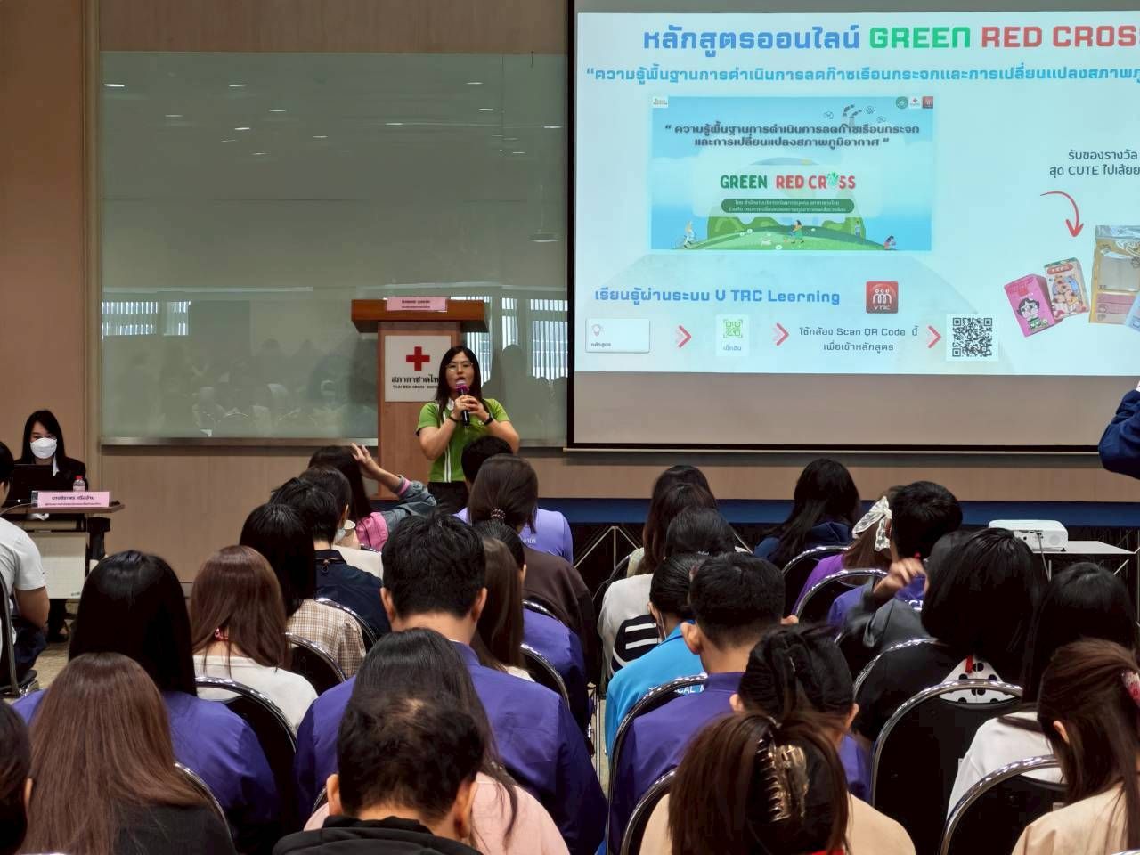 คุณนวลพรรณ คณานุรักษ์ นักวิจัยโครงการ ได้ให้ข้อมูล "Green" Red Cross for Sustainability พร้อมชวนบุคลากรกาชาดร่วมกันมีส่วนร่วมในการดูแลรักษาพื้นที่ในสำนักงานผ่านการให้ความรู้การคัดแยกและจัดการขยะอย่างถูกต้องตามหลักวิชาการ ผ่านกิจกรรมสร้างสรรค์วงล้อคัดแยก เพื่อย้ำเตือนถึงพฤติกรรมการรักษาสิ่งแวดล้อมในชีวิตประจำวัน ซึ่งสอดคล้องกับนโยบายวัฒนธรรมองค์กรสีเขียวที่สภากาชาดไทยมุ่งมั่นผลักดันให้เกิดขึ้นอย่างเป็นรูปธรรม