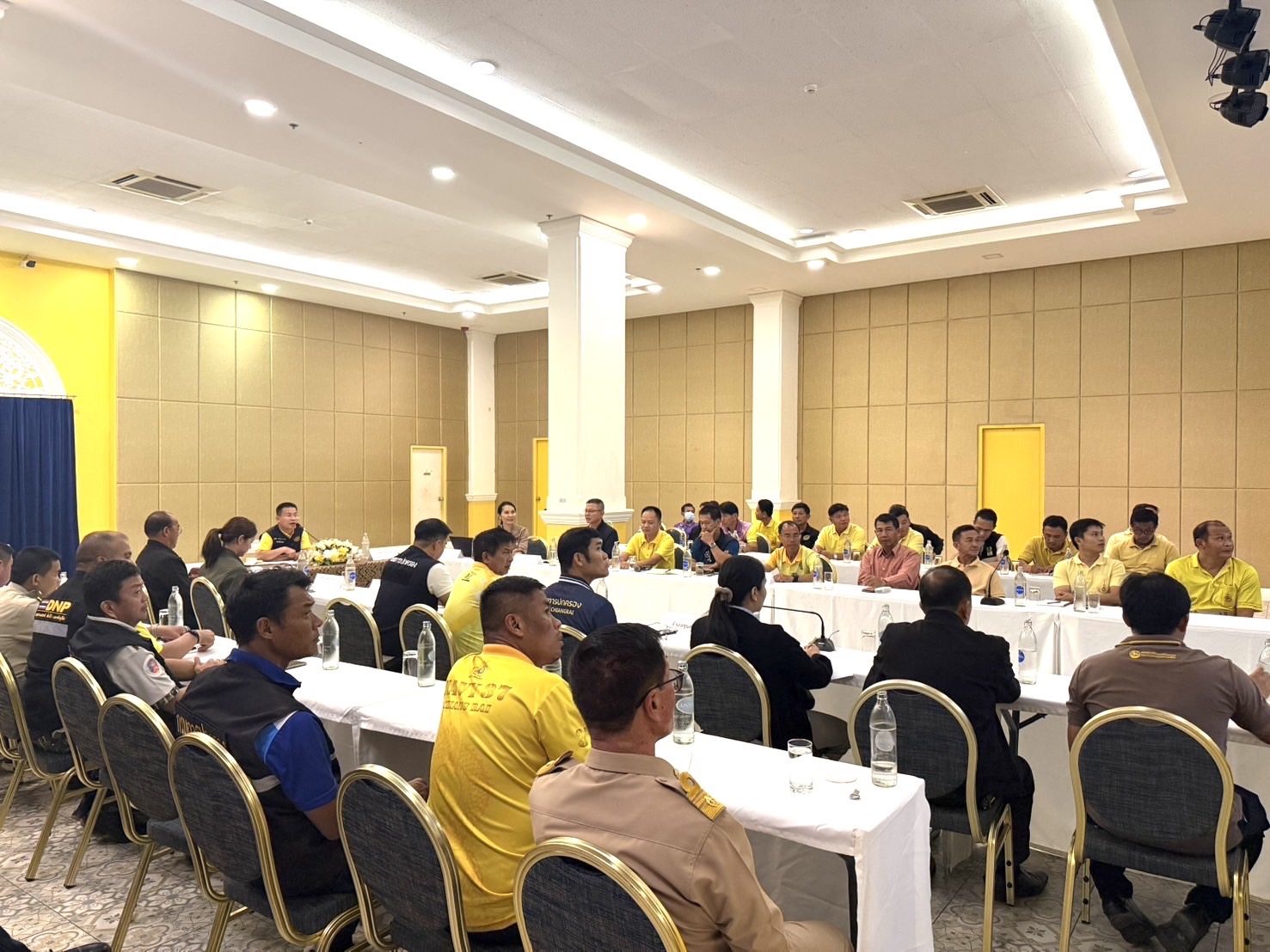 เพื่อแลกเปลี่ยนข้อมูล สถาการณ์ และยกระดับกรอบความร่วมมือในการบริหารจัดการไฟป่าและหมอกควันข้ามแดนในพื้นที่ต่อเนื่องระหว่างหมู่บ้าน อำเภอ ท้องถิ่น และแนวเขตชายแดน รวมถึงสร้างความเชื่อมโยงในการแก้ไขปัญหาหมอกควันร่วมกันอย่างยั่งยืน โดยมีผู้แทนจาก 4 อำเภอ ได้แก่ เชียงของ เวียงแก่น เทิง และขุนตาล โดยมีหน่วยงานท้องที่ ท้องถิ่น งานความมั่นคง กำนัน ผู้ใหญ่บ้าน โดยได้รับเกียรติจากนายอุดม ปกป้องบวรกุล นายอำเภอเชียงของ เป็นประธานกล่าวต้อนรับและเปิดการประชุม ซึ่งได้เน้นย้ำถึงความสำคัญของการบูรณาการความร่วมมือข้ามพื้นที่ร่วมกันในการบริหารจัดการพื้นที่เกี่ยวข้องที่มีผลกระทบการเผาข้ามแดน ไฟป่าและหมอกควันข้ามพื้นที่ ตลอดถึงการเก็บหาของป่า เลี้ยงสัตว์ ซึ่งเป็นความขัดแย้งระหว่างกัน จึงเป็นโอกาสอันดีในการหารือกรอบความร่วมเพื่อกันแก้ไขในการบริหารจัดการและเพิ่มประสิทธิภาพบทเรียนการทำงานในช่วงที่ผ่านมา พร้อมนี้ ได้มีการนำเสนอข้อมูลสถานการณ์ไฟป่าและหมอกควันในพื้นที่ โดยนายนิคม อิ่มเอบ ผู้อำนวยการส่วนควบคุมและปฏิบัติการไฟป่า สบอ.15 และนางสาวภูสุดา วรรณบวร นักวิชาการป่าไม้ปฏิบัติการ อุทยานแห่งชาติภูชี้ฟ้า และนางสาววิลาวรรณ น้อยภา หัวหน้าโครงการ สถาบันสิ่งแวดล้อมไทย นำเสนอข้อมูลและการให้การสนับสนุนของโครงการในระดับจังหวัดและอำเภอที่เกี่ยวข้อง
